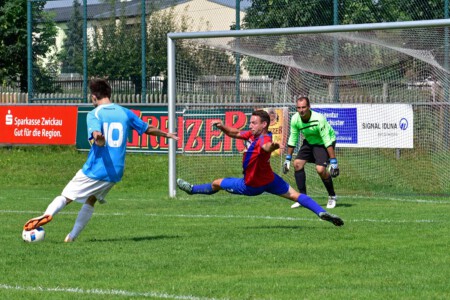 Der Gastgeber wich aber nicht davon ab, Meerane früh zu stören, den Ball zu erobern und möglichst schnell zum Torabschluss zu kommen. Pötzsch nutzte eine dieser Chancen nachdem er auf rechts wieder von Heymann eingesetzt wurde, sich gegen einen Gegenspieler durchsetzte und unhaltbar ins rechte kurze Eck traf (70.). Jetzt war das Spiel quasi entschieden. Weitere Chancen durch Flechsig und Seltmann wurden nicht genutzt und auch brenzlige Situationen vor dem eigenen Tor konnte man gemeinsam entschärfen und so bis zum Schlusspfiff die Null halten.