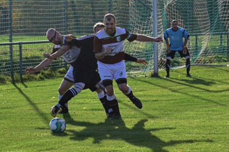 Nicht so in diesem Spiel. In der 20. Minute bekamen die Hausherren Freistoß in zentraler Position. Pötzsch trat an und verwandelte diesen zum 2:0. Keine zwei Minuten später legten die Hausherren sogar noch nach. Diesmal setzte Dobkowitz den Verteidiger so unter Druck, dass dieser einen Querpass vor das eigene Tor spielte, wo Hoffmann freistehend nur noch einschieben musste (22.). Wieder nur wenig später konnte Hoffmann eine Ecke von Pötzsch per Kopfball im Tor zum 4:0 unterbringen (25.). Die Gegenwehr der Gäste hielt sich in Grenzen. Vorstöße wurden von der Hirschfelder Defensive sofort unterbunden und auch Pfleger hatte im Tor einen ruhigen Tag. Was blieb, waren die groben Fouls und Beschimpfungen der Werdauer, die auch weiterhin nur ungenügend vom Schiessrichter unterbunden wurden.
