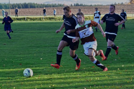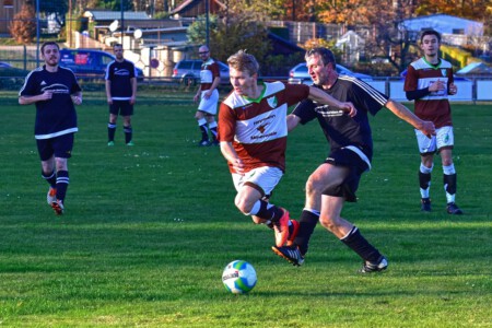 Hirschfeld ließ sich nicht beirren, sondern wollte das nächste Tor nachlegen. Dazu erarbeiteten sie sich einige gute Chancen, nutzen diese jetzt aber nicht mehr so eiskalt. Gegen Ende der ersten Hälfte wagte dann auch Groß einen Vorstoß, nachdem er den Ball in der eigenen Hälfte erobert hatte. Er zog zielstrebig aufs Tor, kam auch zum Abschluss, der aber leider etwas zu unplatziert war und somit nicht zum nächsten Tor führte. Dieses fiel aber noch vor dem Pausenpfiff. Nach schöner Vorarbeit von Pötzsch versenkte der in Position gelaufene Schällig aus Nahdistanz zum 5:0 Halbzeitstand (42.).