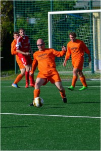 Die zweite Hälfte mussten die Hirschfelder dann zu neunt bestreiten, da Gerisch – wie vor dem Spiel schon abgesprochen – nicht das volle Spiel bestreiten konnte. Jetzt wurden die Räume für Kirchberg natürlich noch größer und obwohl sich Hirschfeld dagegen stemmte, konnte Kirchberg noch drei Tore erzielen. Sie ließen dabei aber auch viele Chancen liegen. Außerdem parierte der Hirschfelder Torhüter Pfleger einige Male sehr gut. Die beiden besten Chancen im zweiten Durchgang hatte Hoffmann: Zunächst konnte er einen herausragenden Pass von Flechsig nicht zum Torabschluss nutzen. Wenig später setzte er den Ball frei vor dem Torwart knapp neben das Tor.