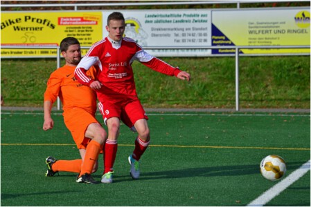 Die Vorgabe vom Trainer war klar: Solange es geht die Null halten und sich eventuell bietende Chancen nutzen. Kirchberg war zwar spielerisch besser, konnte die Überzahl anfangs aber nicht nutzen. Erst eine abgerutschte Flanke führte zur Führung des Gastgebers (5.). Wenig später konnte auf der Gegenseite J. Heymann eine sehr gute Chance zum Ausgleich nicht nutzen. Kirchberg fand jetzt besser ins Spiel und konnte in der 16. Minute auf 2:0 erhöhen. Hirschfeld versuchte alles, was möglich war und brach – wie auch in den letzten Spielen – nicht ein. Die Folge war der Anschlusstreffer sechs Minuten später: J. Heymann schickte Gerisch lang und dieser überwand den Torwart aus großer Distanz (22.). Dieses Ergebnis konnte mit viel Einsatz und Kampf in die Pause gerettet werden.