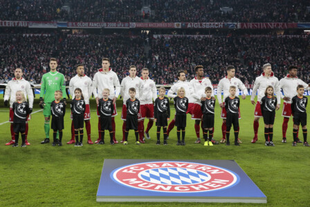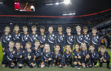 Auch wenn unsere Mannschaft (noch) nicht in der Champions League spielt, waren unsere Farben dennoch letztes Jahr auf der großen Fußballbühne vertreten. Am 05.12. war unser E-Junioren-Spieler Julius Schinkewitz (gelbe Schuhe) beim letzten Vorrundenspiel des FC Bayern München gegen Paris St. Germain eines der Einlaufkinder und konnte so mit den Stars vor 70.000 Zuschauern in die ausverkaufte Allianz Arena einlaufen. Ein sicher bewegendes Erlebnis, das unser Julius so schnell nicht vergessen wird.